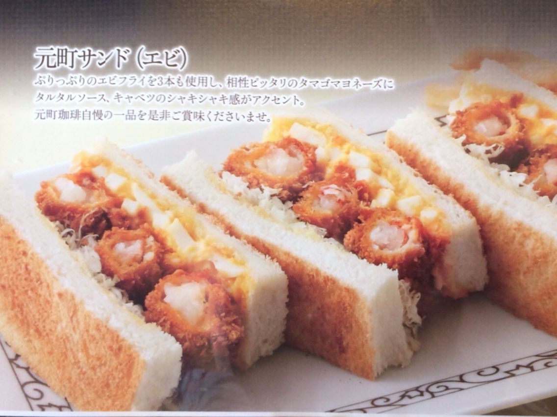 元町珈琲自慢の一品「元町サンド(エビ)」