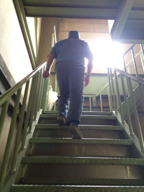 工場内に入る手前、階段があります。