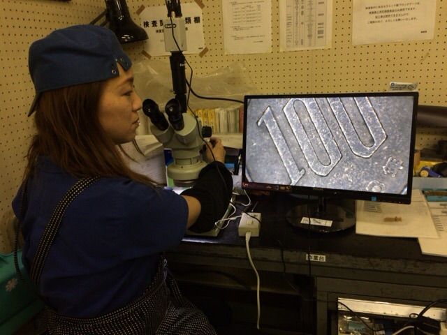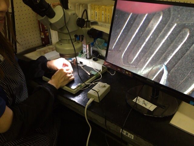 顕微鏡、画面を見ながら磨いていきます。