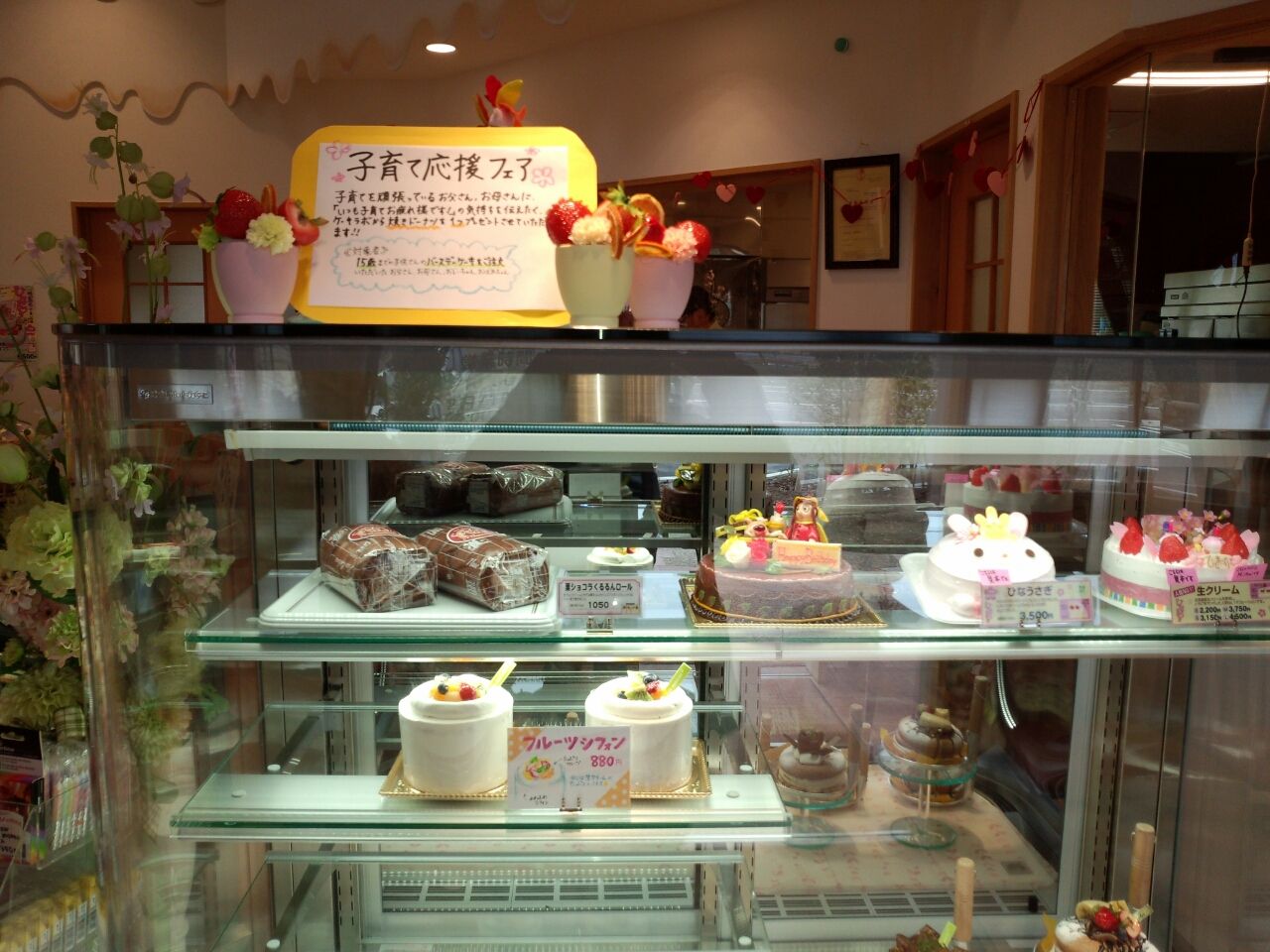 ショーケースには沢山のケーキ。