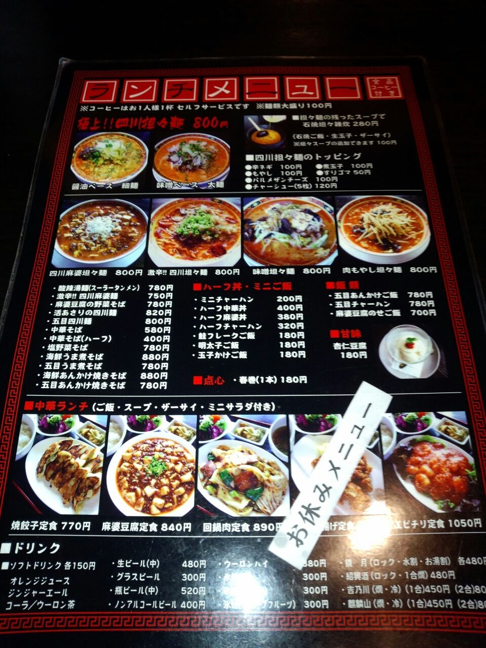 店内には担々麺のチラシがいくつもあり。
