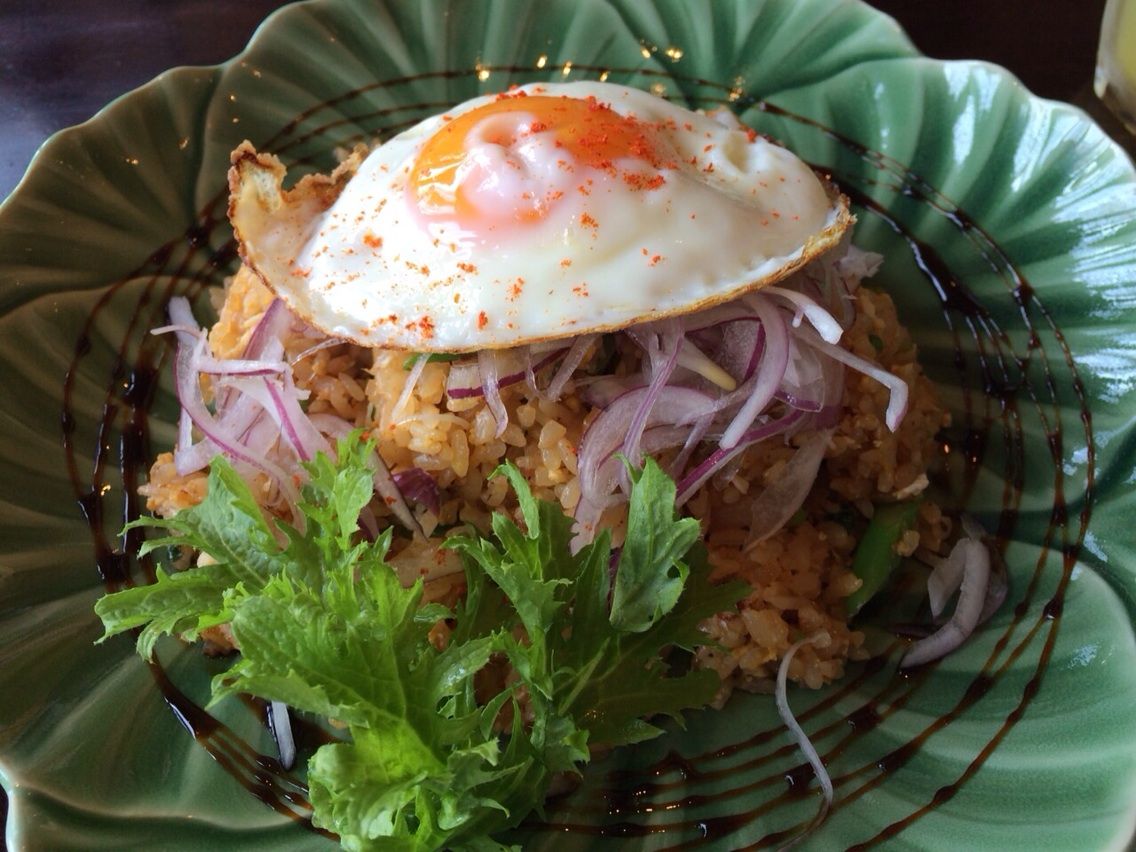 ナシゴレンの周りに縁取るようにかかるソースが甘くてナシゴレンにぴったり。