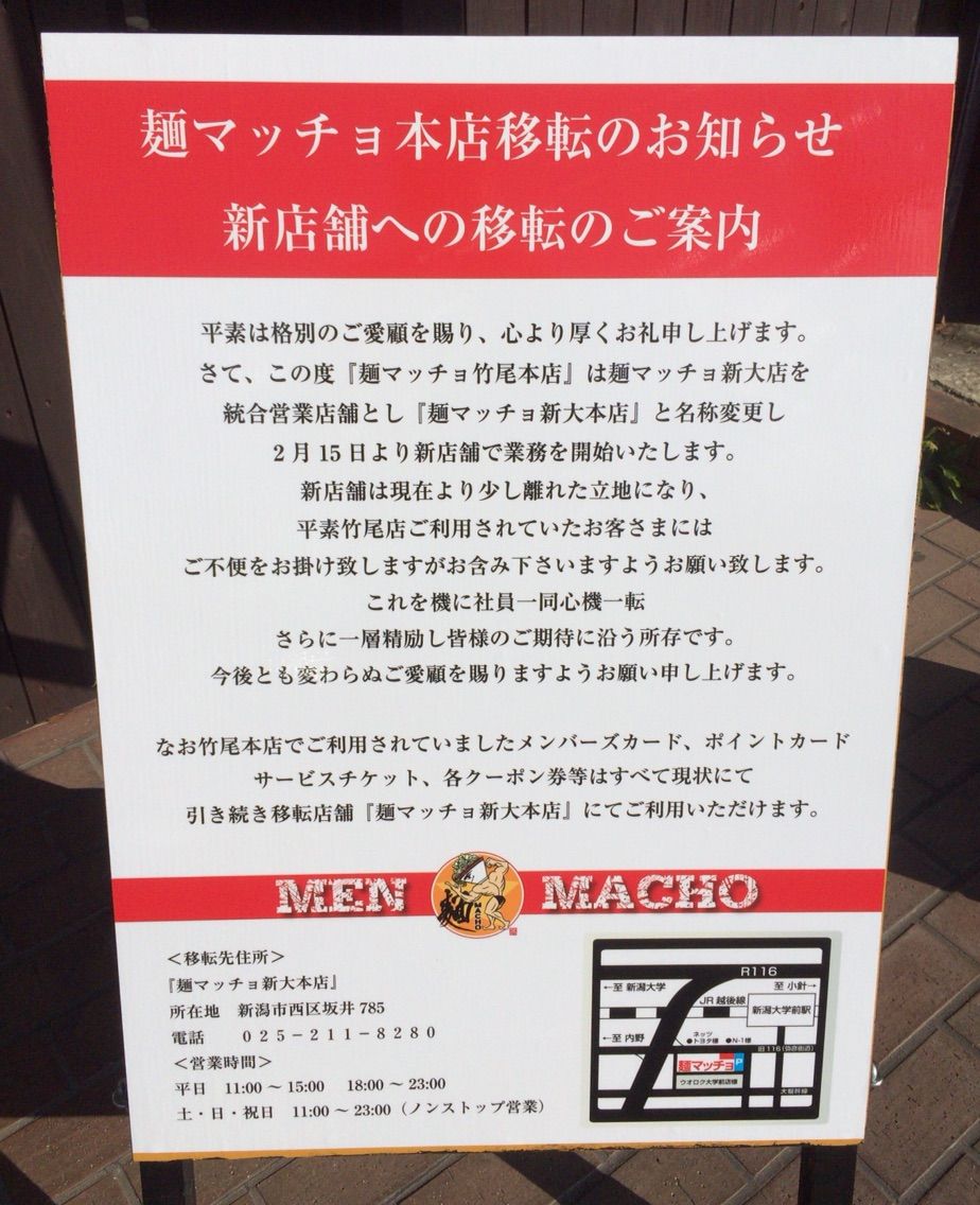 『麺マッチョ本店移転のお知らせ』