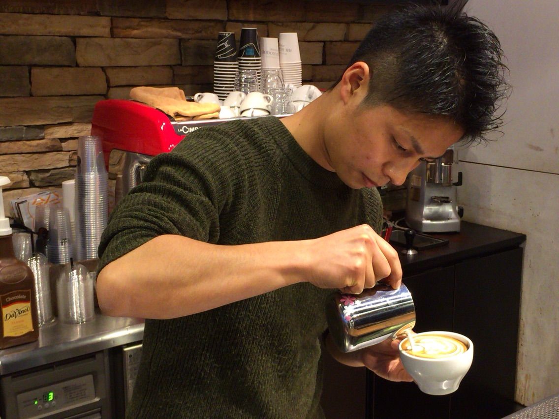 カフェラテアートにも力を抜かず