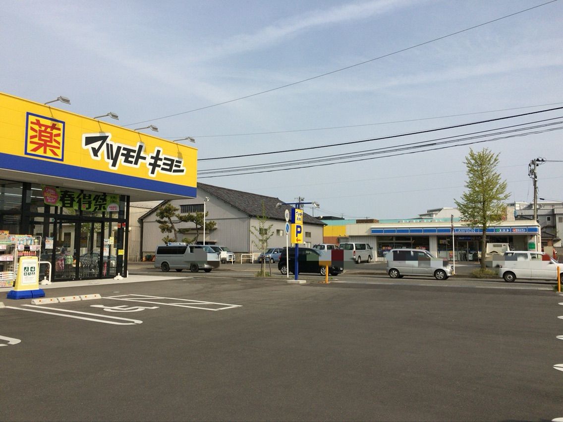 左に「マツキヨ」と「ローソン」の角を