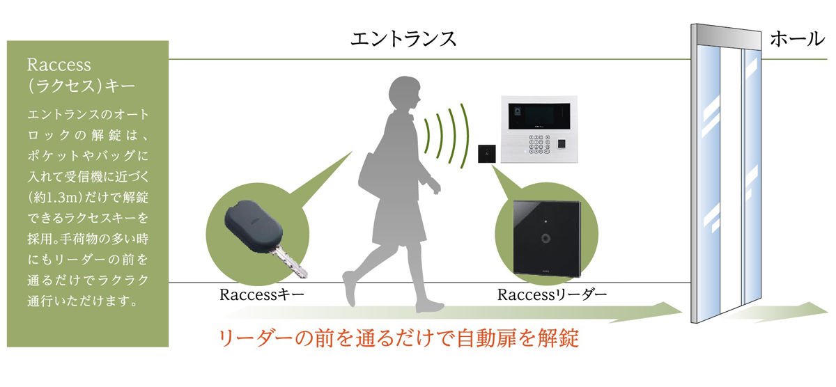 エントランスのキーレス機能。