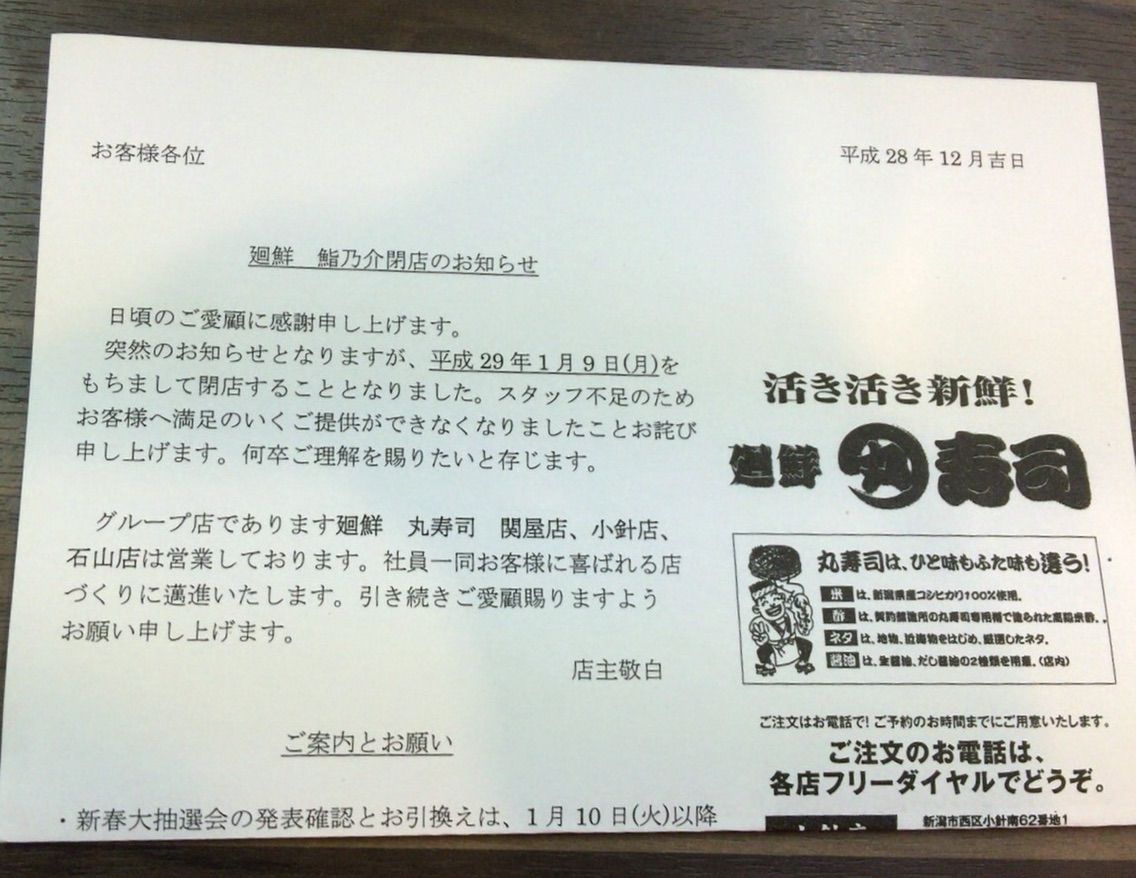 なんだか最近スタッフ不足で閉店するお店が