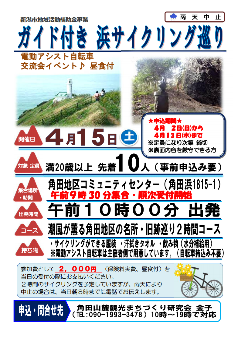 イベント名:角田山麓を巡るガイド付きサイクリング交流会