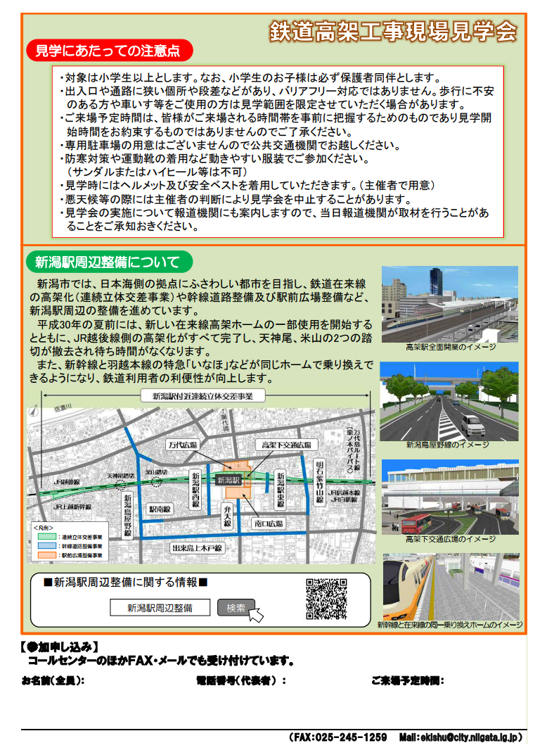 問合先:新潟市新潟駅周辺整備事務所 見学会係