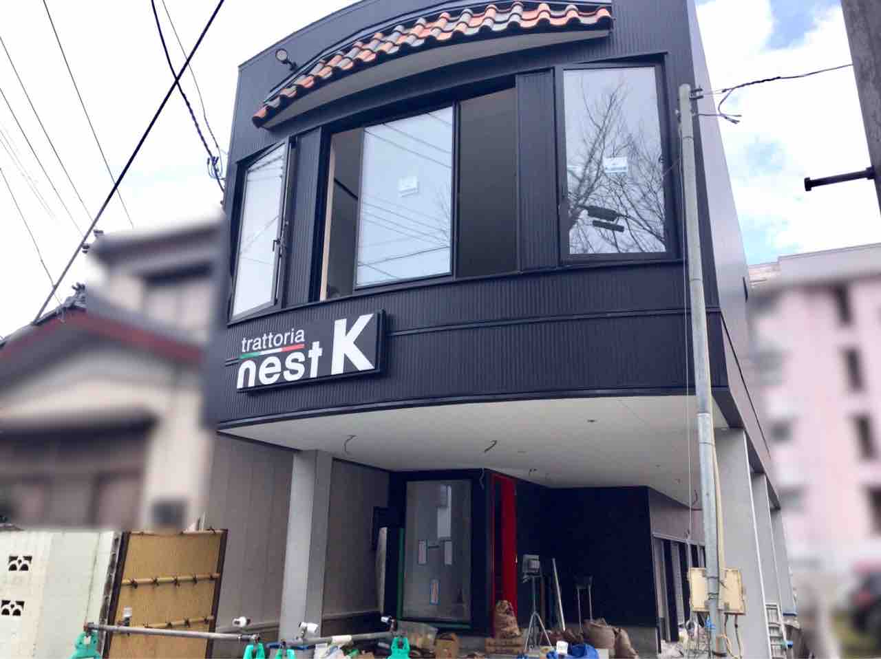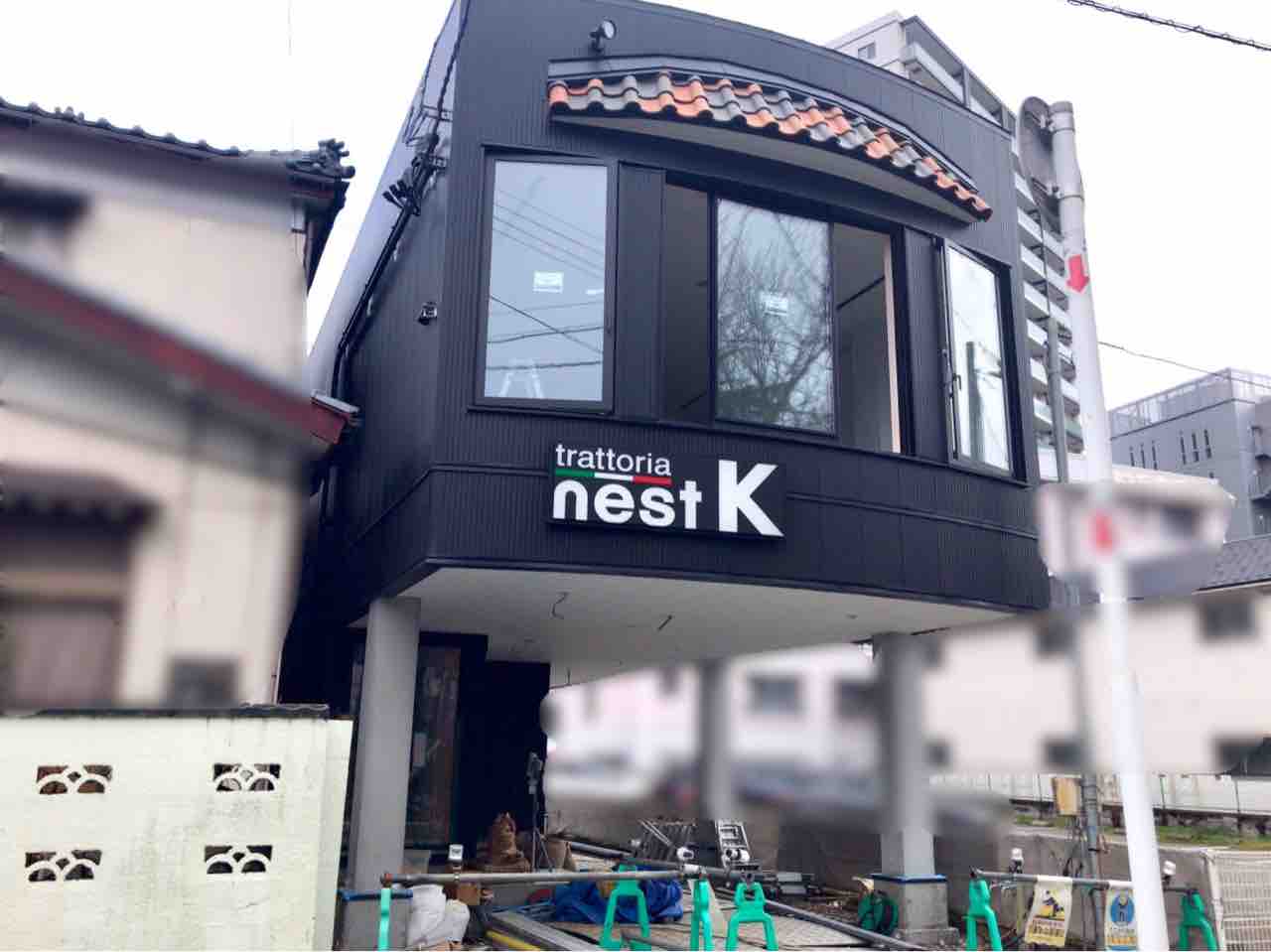 看板には『trattoria nest K』の文字…
