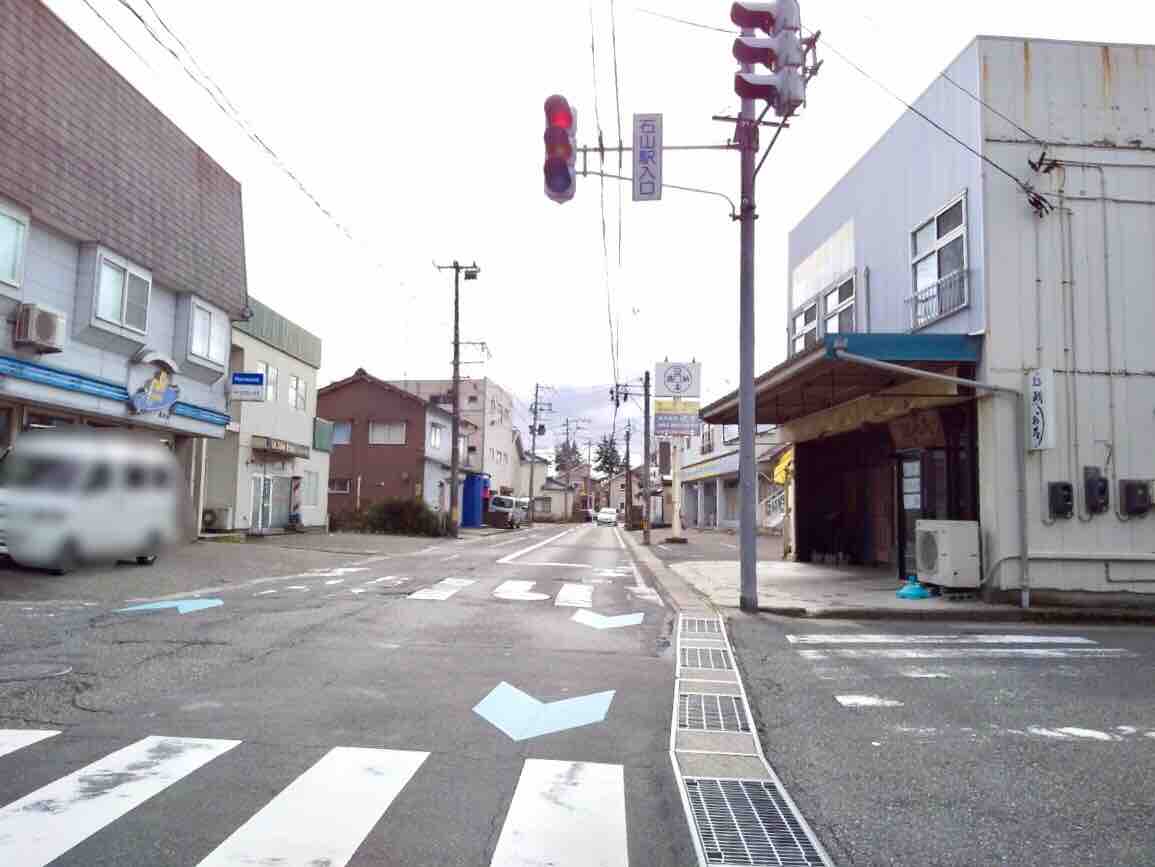 『石山駅入口』交差点角。