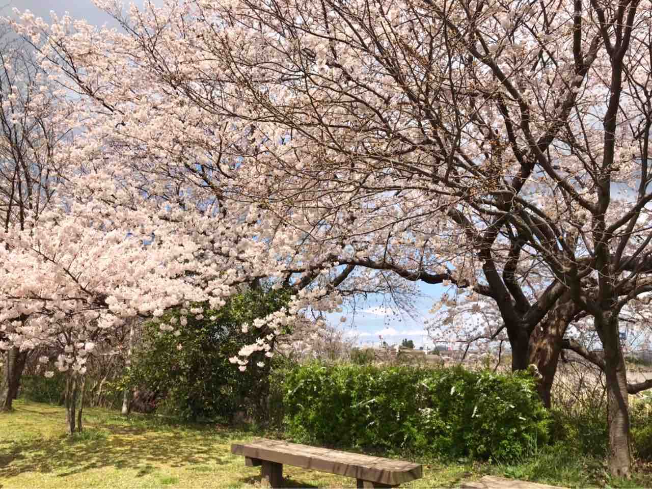 休憩しつつ桜眺められるって