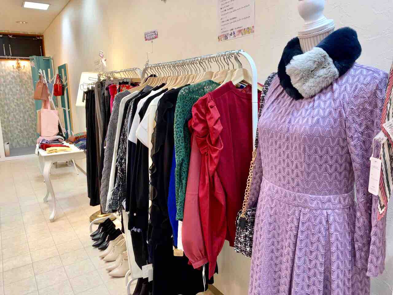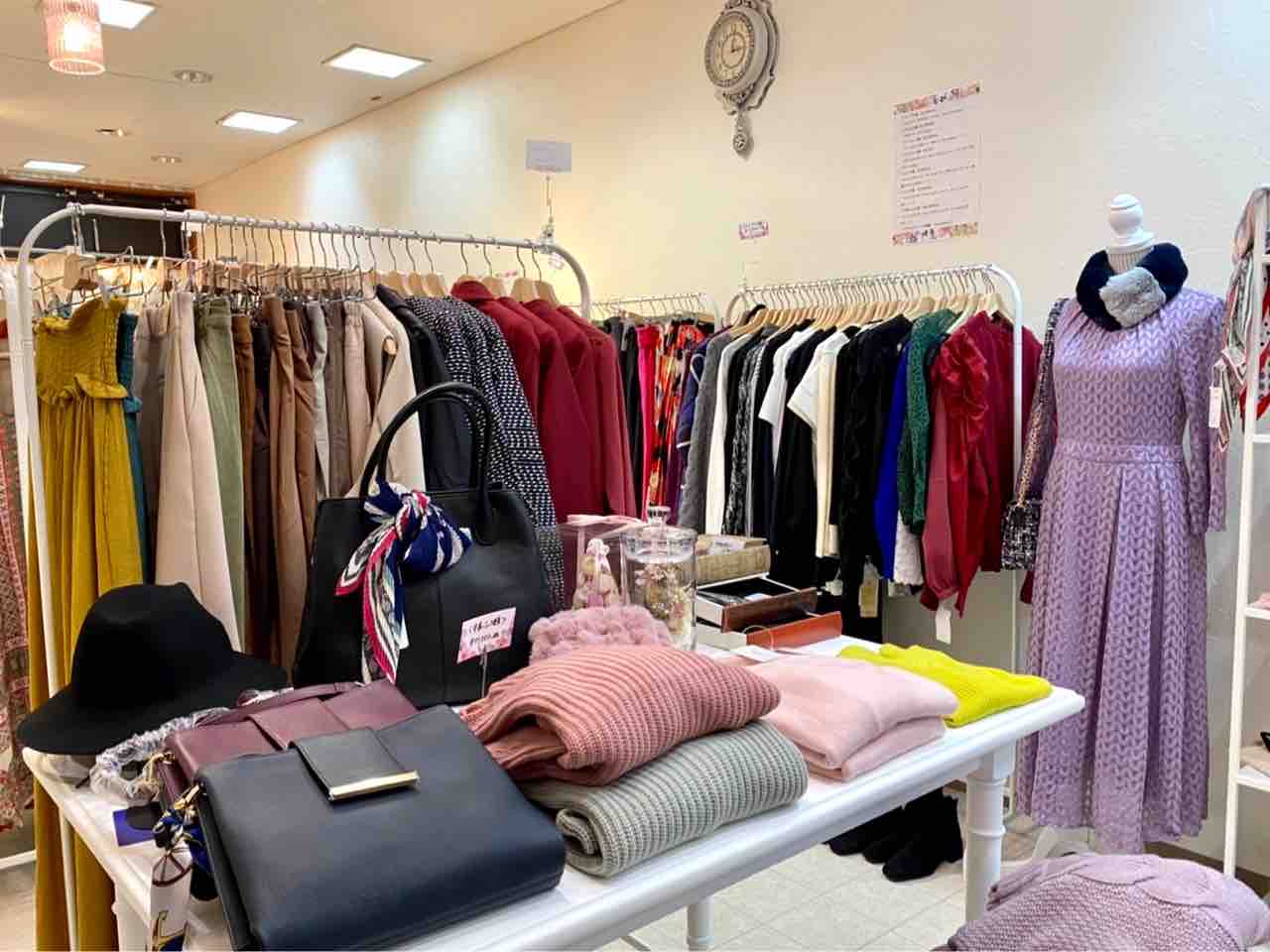 店内はいろんなジャンルの服がずらり~。