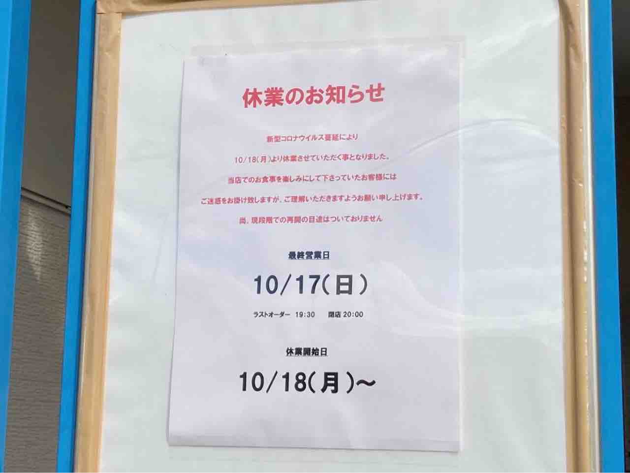 休業は、今日10月18日から。