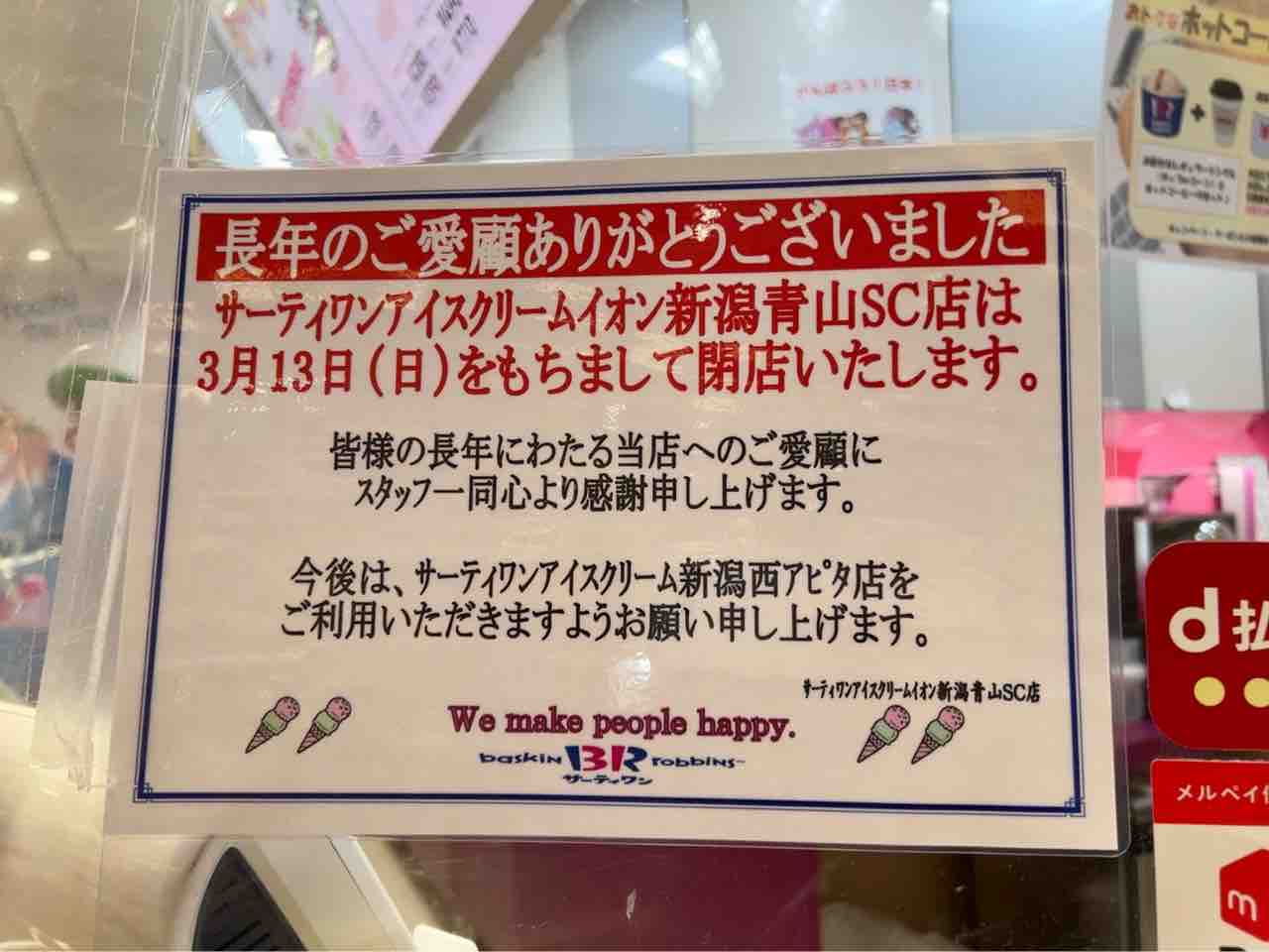 店 名:サーティワンアイスクリーム イオン新潟青山ショッピングセンター店(baskin robbins)