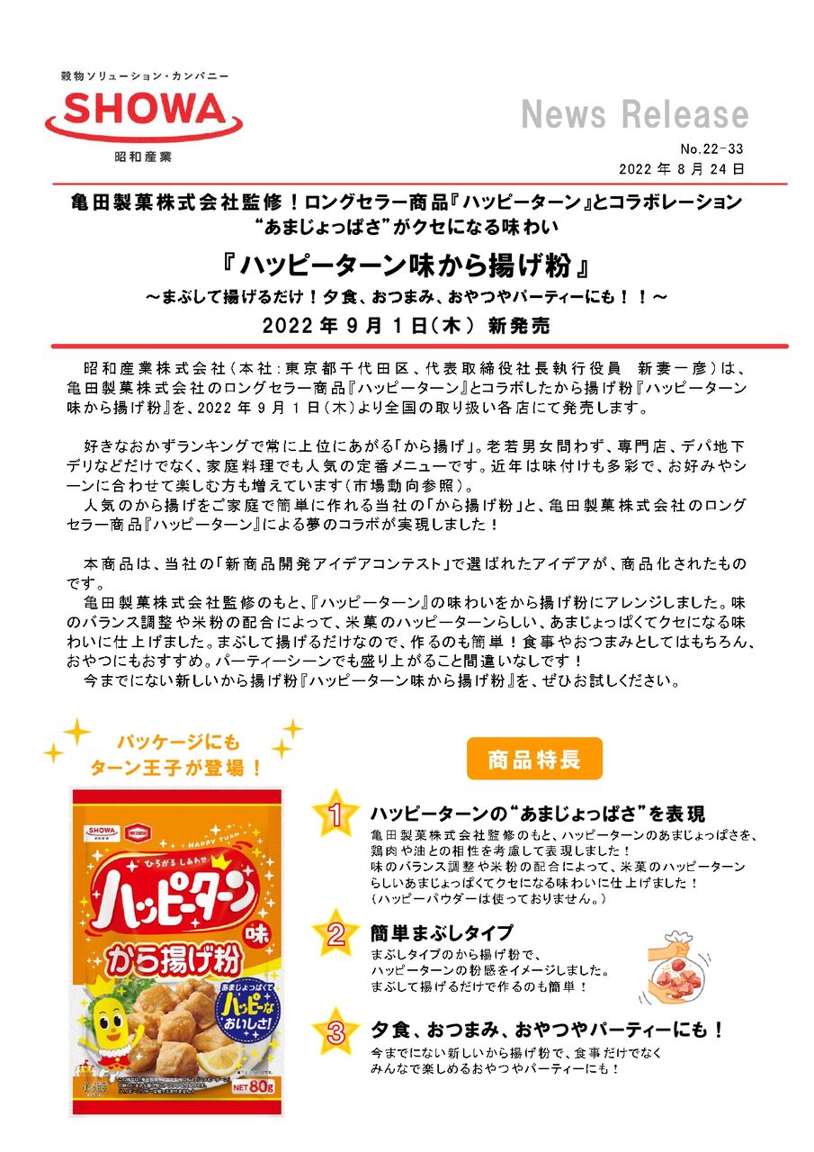 ※ニュースリリースは、昭和産業公式HPよりダウンロードしました。