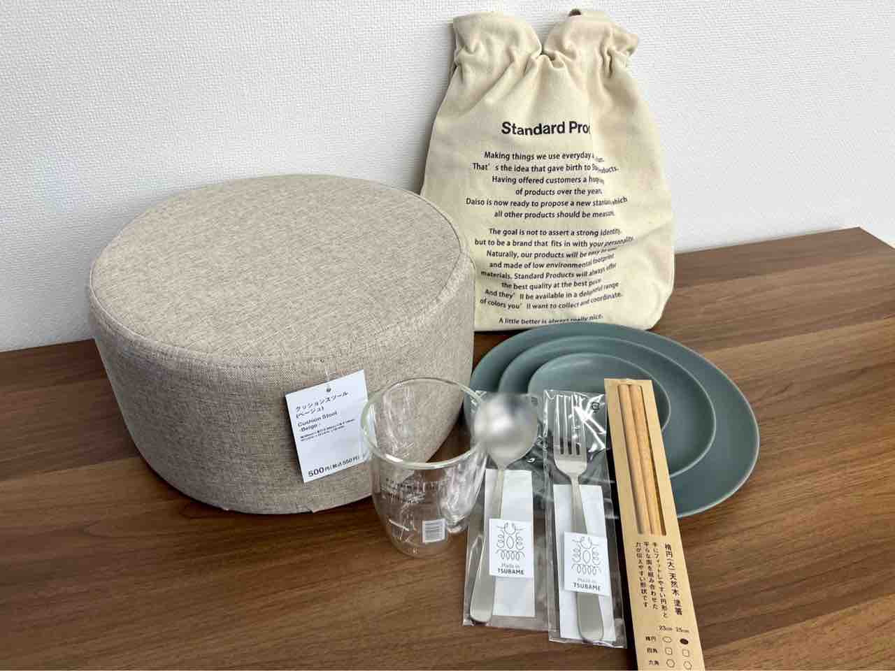 スツール、保冷バッグ、食器、
