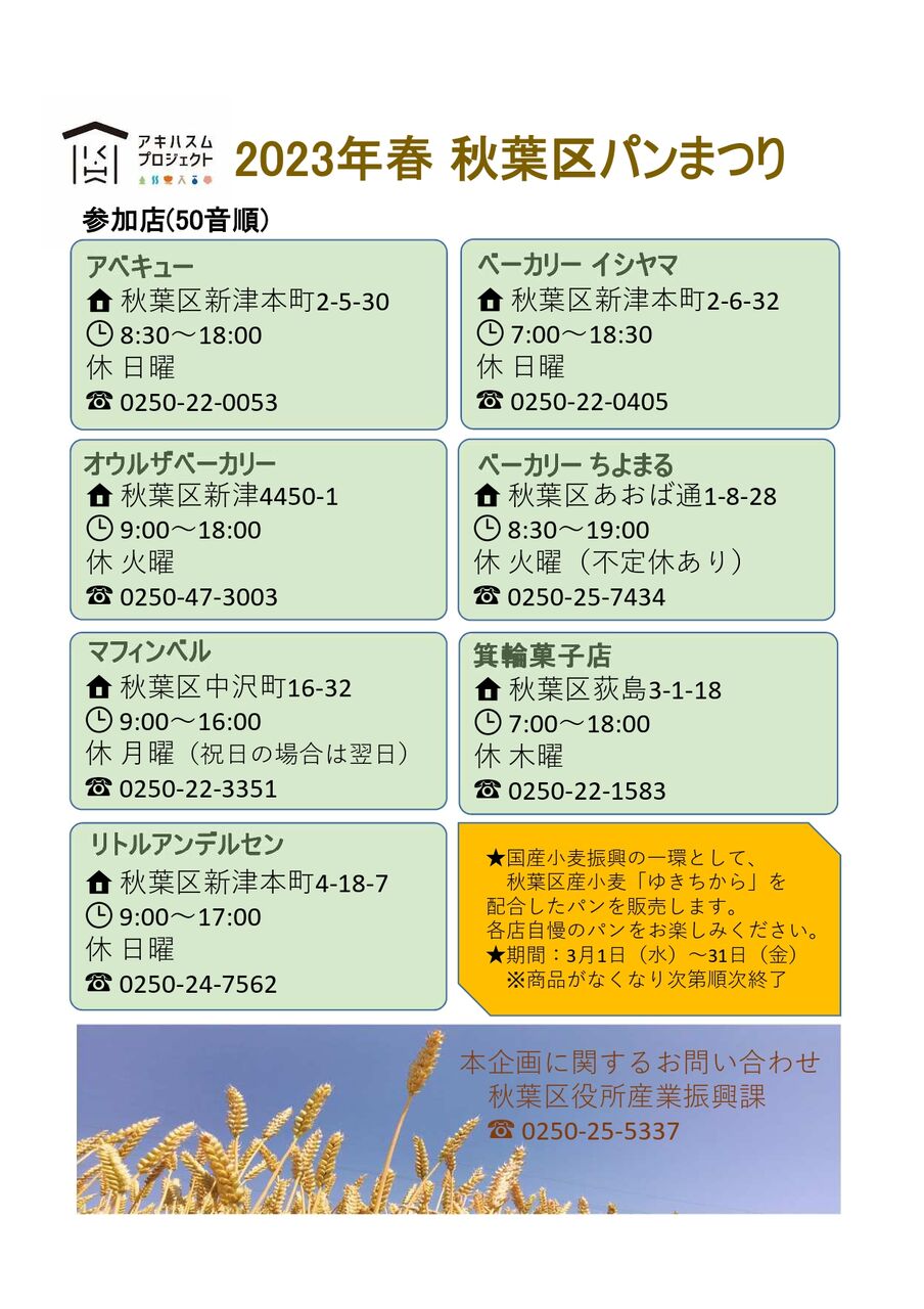 『2023年春 秋葉区パンまつり』開催!と…
