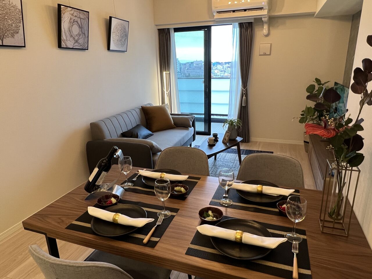 ダイニングテーブルとソファ置いても