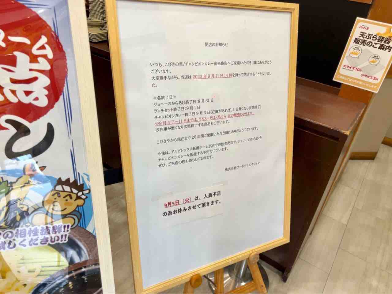 9月11日14時をもって閉店。
