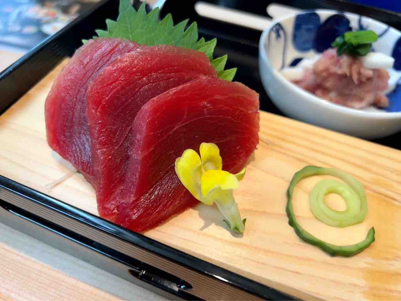 まぐろのお刺身は、分厚く3カット!