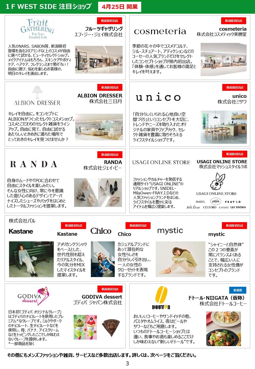 ※『CoCoLo新潟』の『「CoCoLo新潟」グランドオープン』&ショップ公開についての詳細は、こちら。