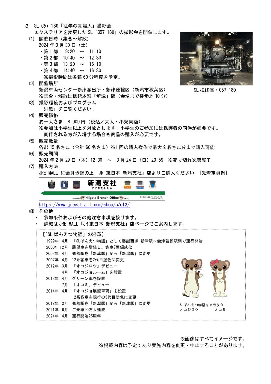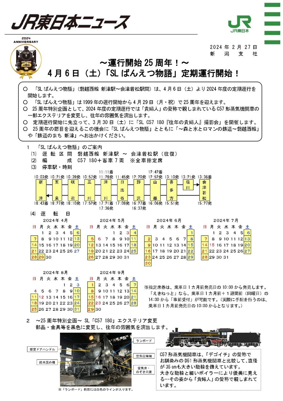 『SL ばんえつ物語』の運行は、4月6日から。