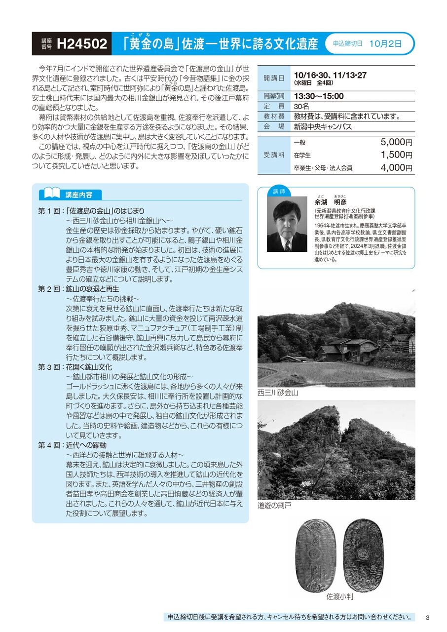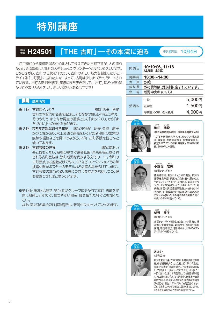 他にも、我らが新潟に密着した講座が