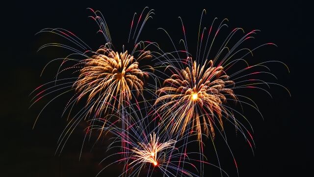 打ち上げ花火が秋空に輝く。