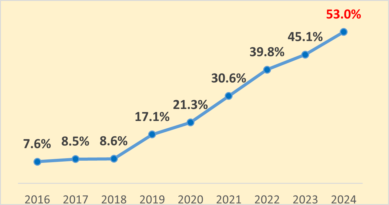 去年23.2%から2倍に上昇!