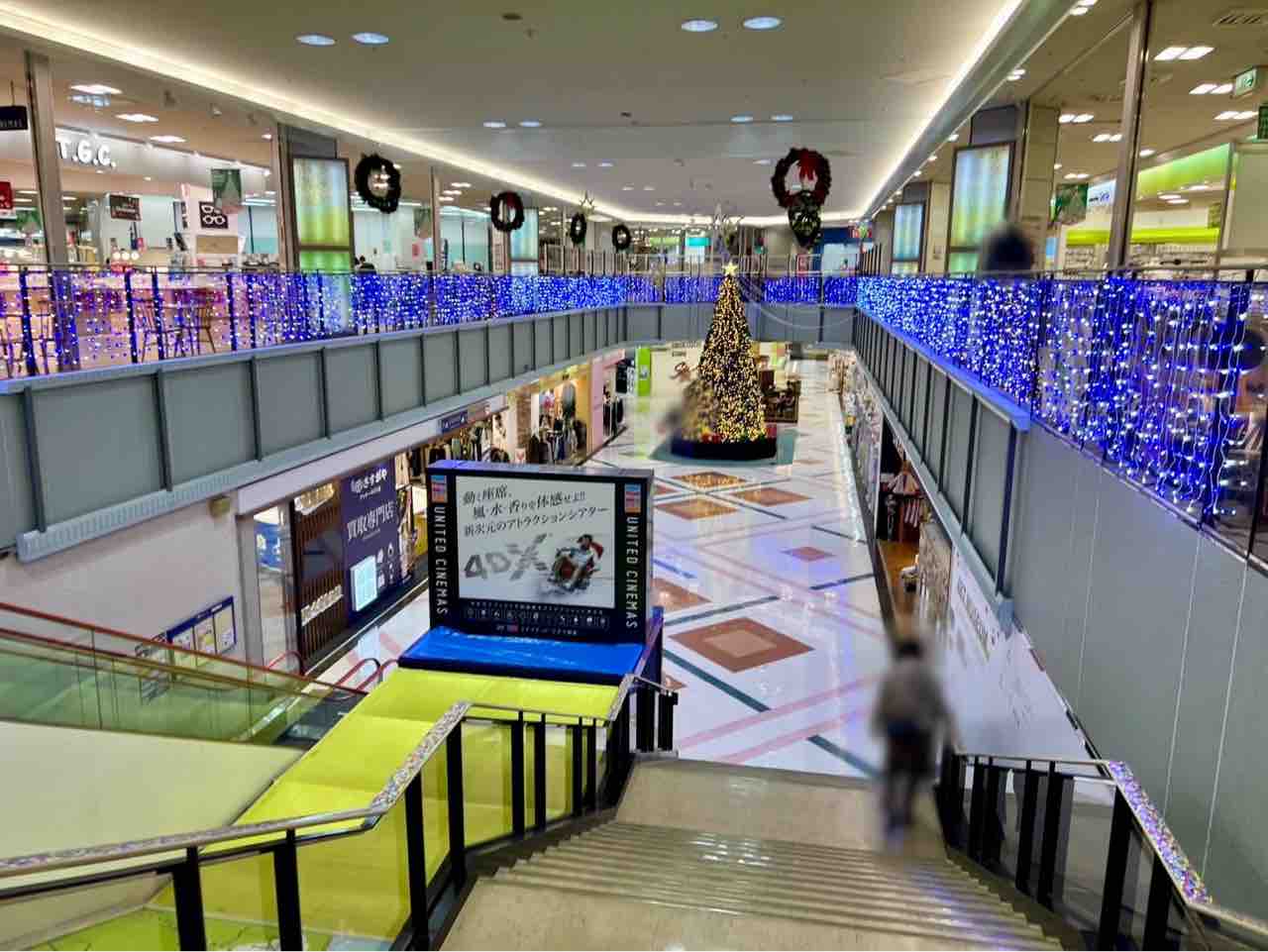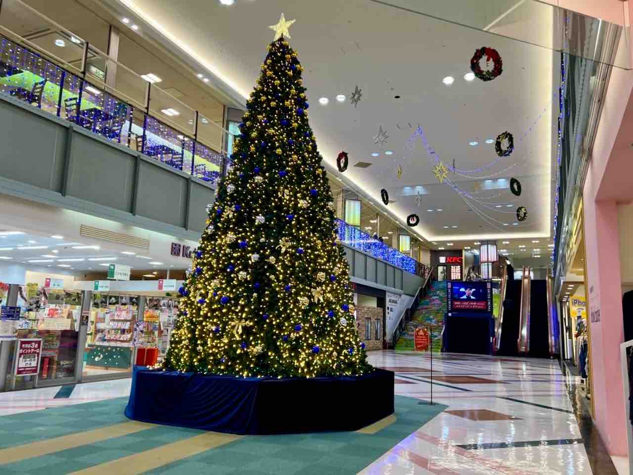 大きなクリスマスツリーの近くで
