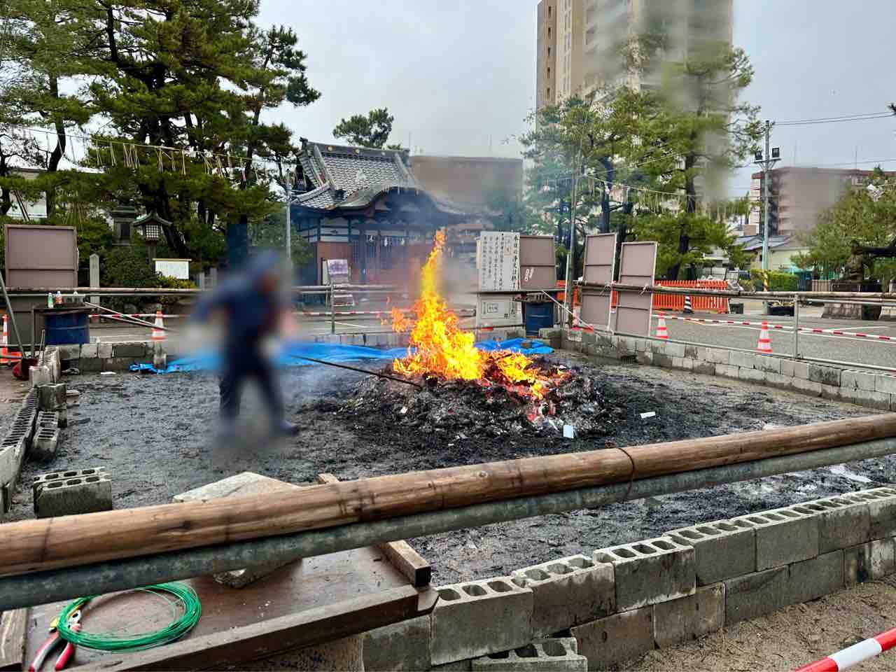 お札とお守りをお焚き上げ。