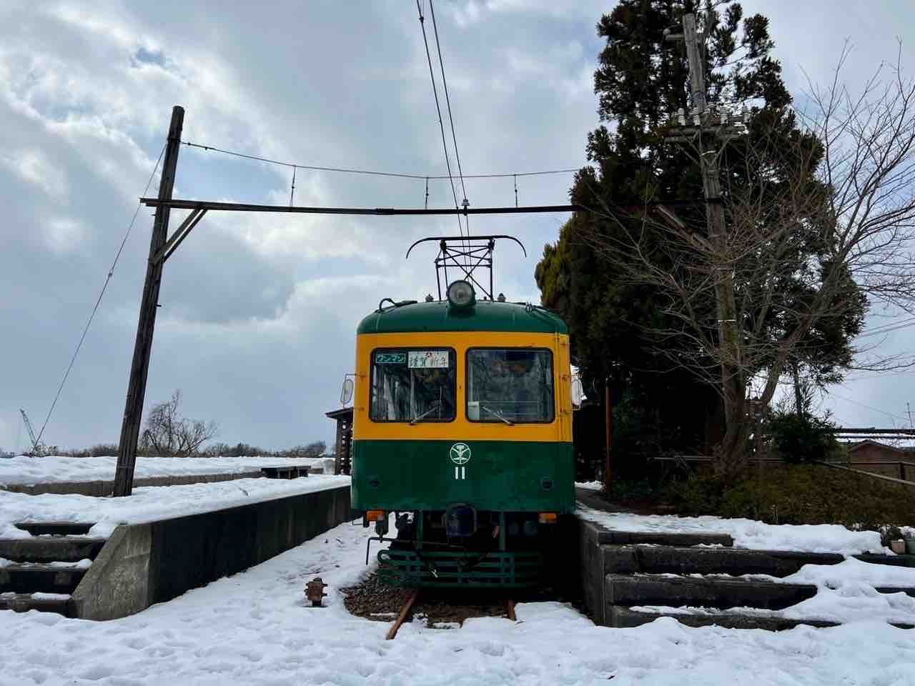 25年ぶりに雪を纏った、かぼちゃ電車。