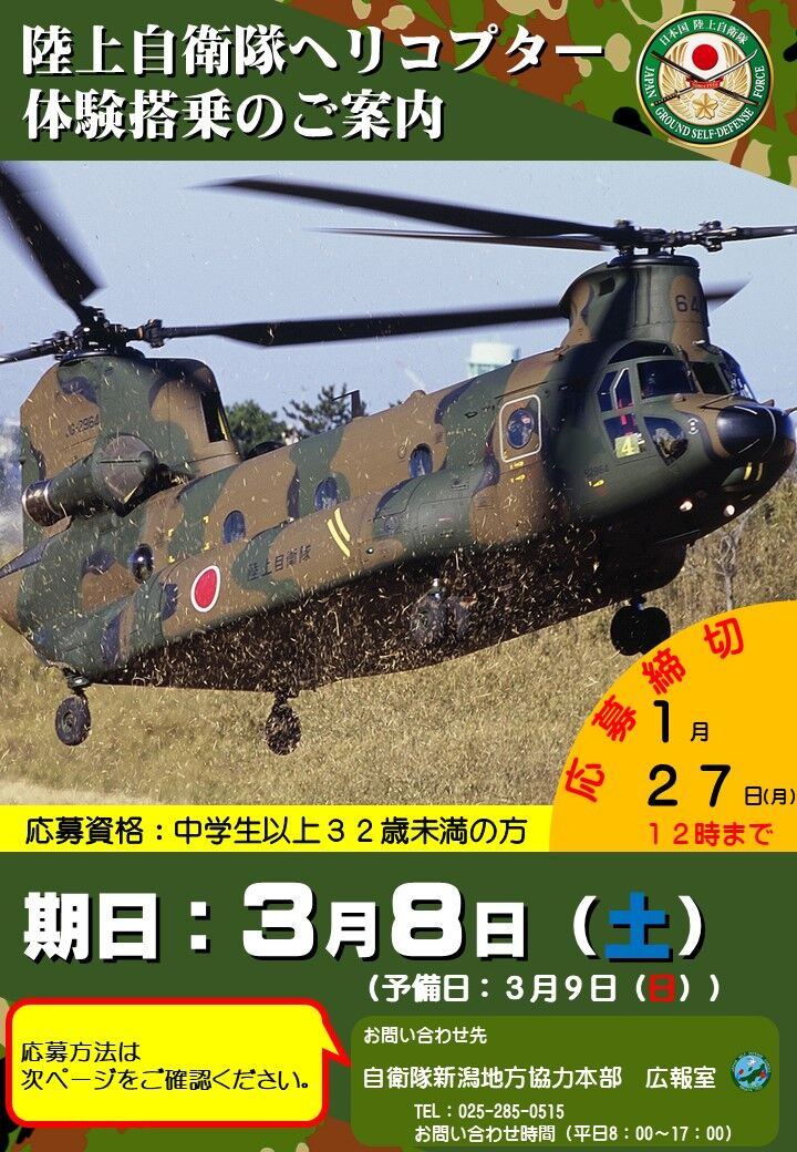 問合先:自衛隊新潟地方協力本部 広報室