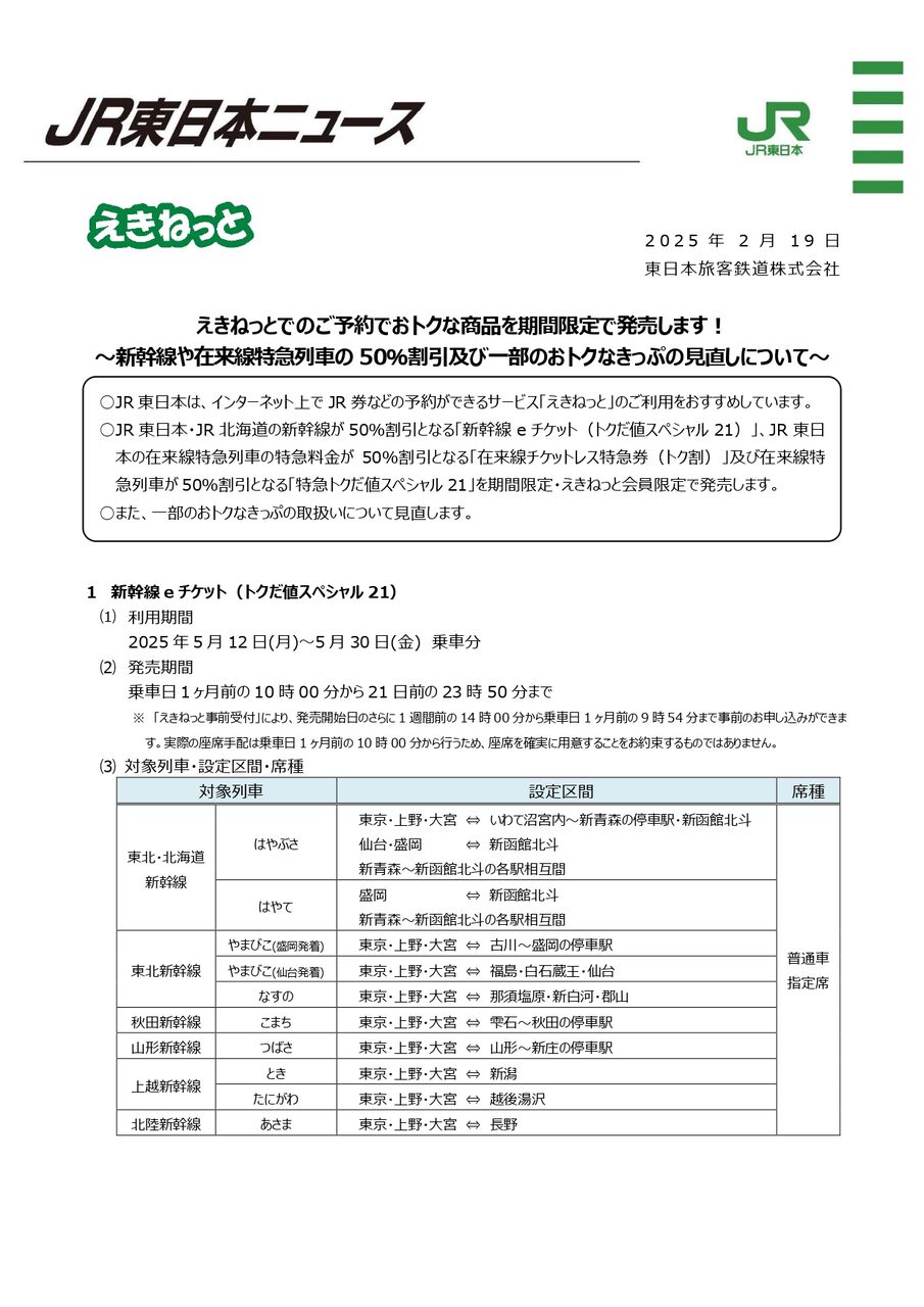『新幹線 eチケット(トクだ値スペシャル 21)』