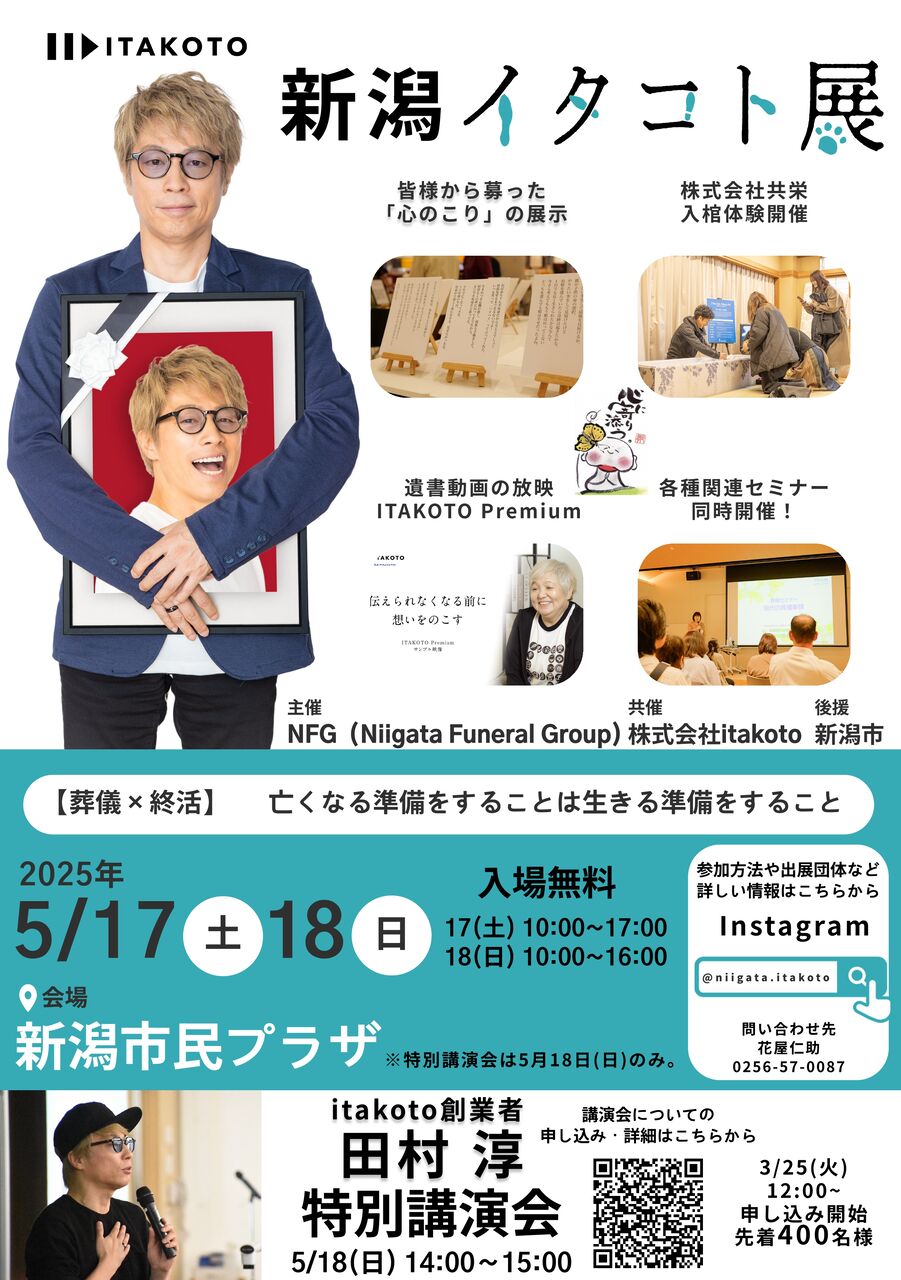 ※新潟イタコト展 田村淳氏特別講演会申し込みフォームは、こちら。