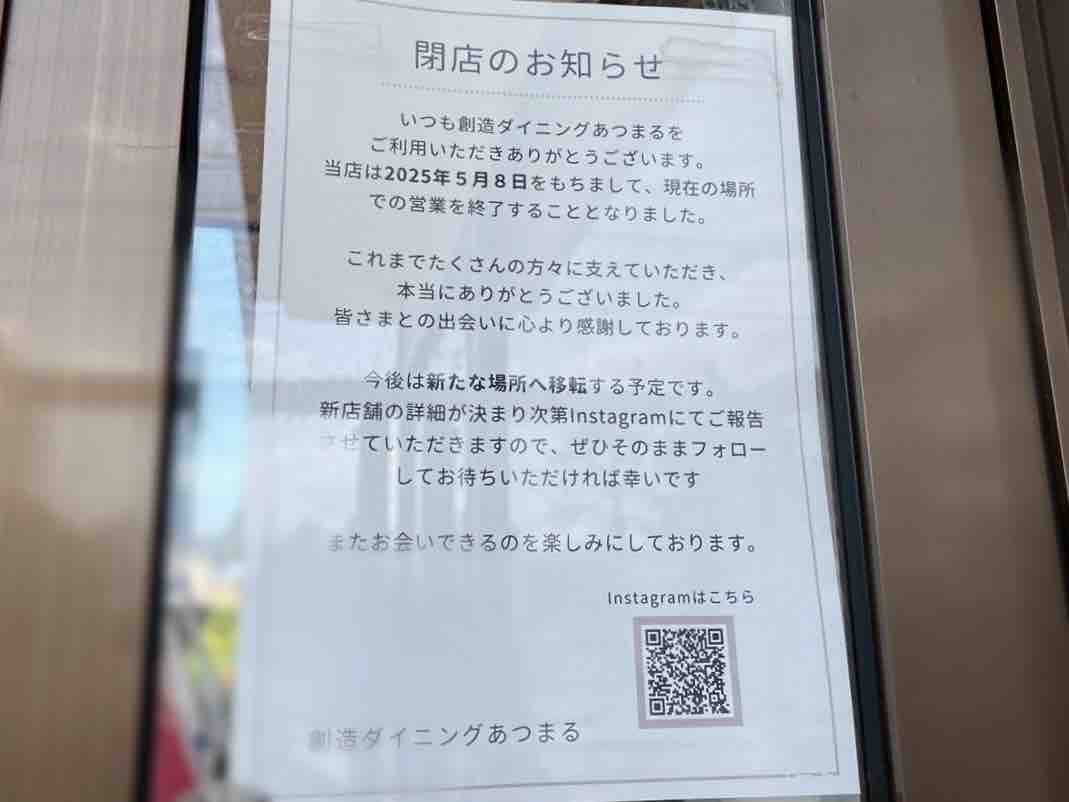 『創造ダイニングあつまる』が閉店。涙