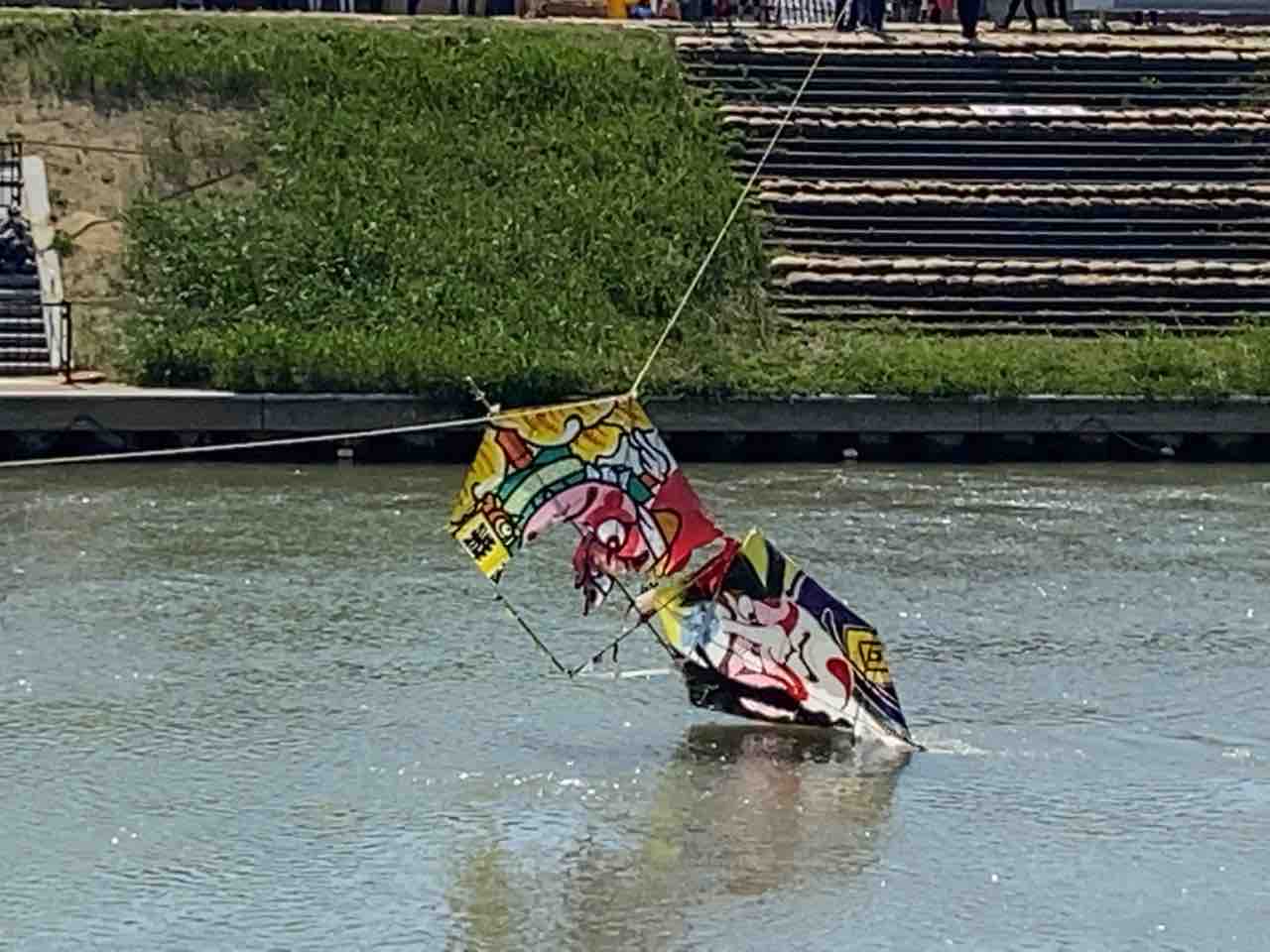 大きな凧を空中で絡ませる!