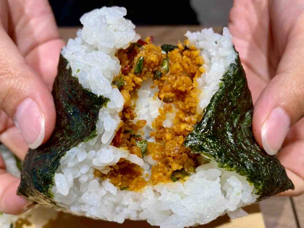 『鶏そぼろと焦がしネギ』のおむすび。