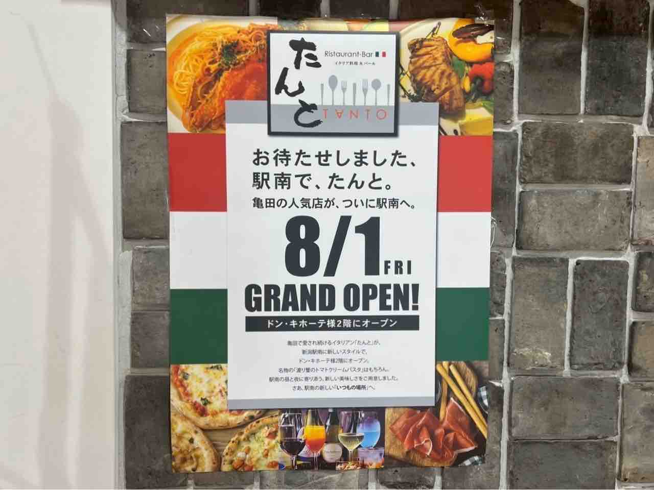 店 名:イタリア料理&バール たんと 新潟駅南店