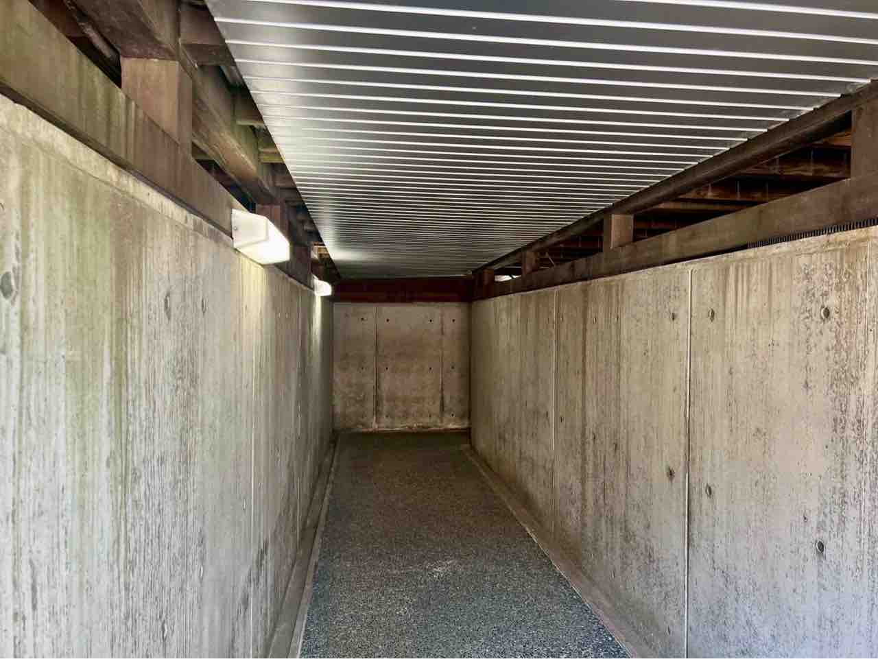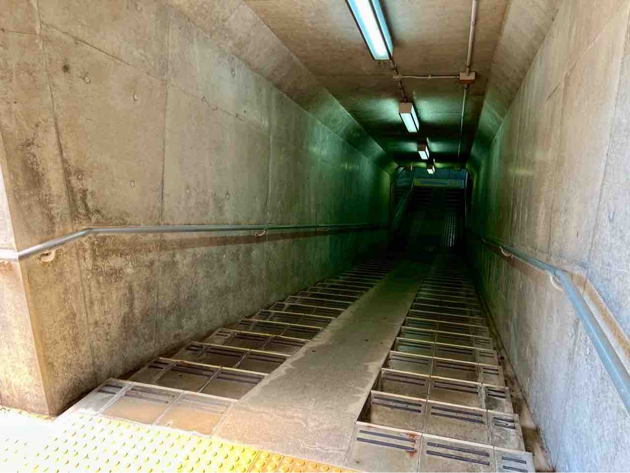 な広~いトンネル内の自歩道。