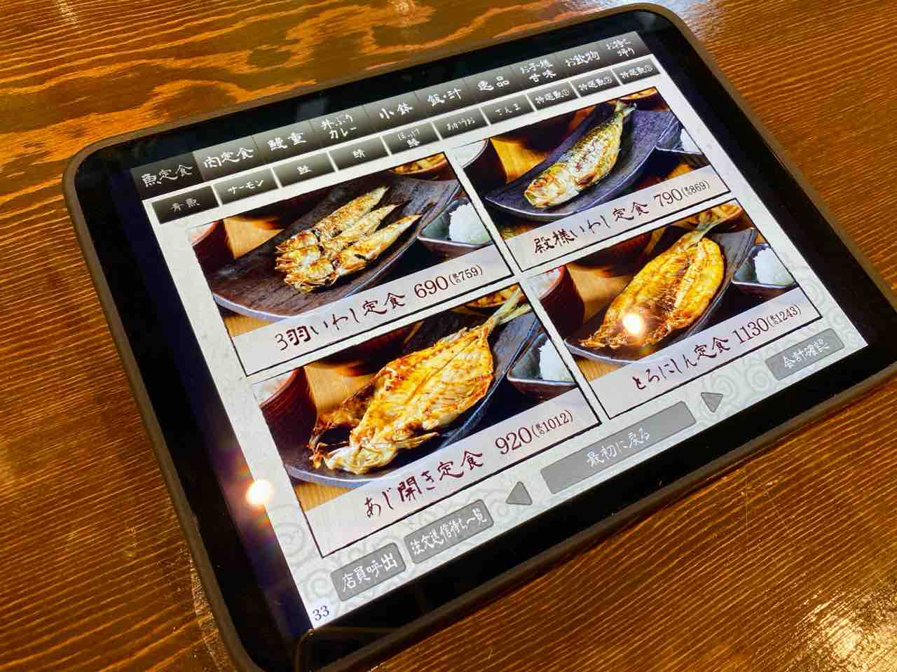 注文方法は、タブレットで操作。