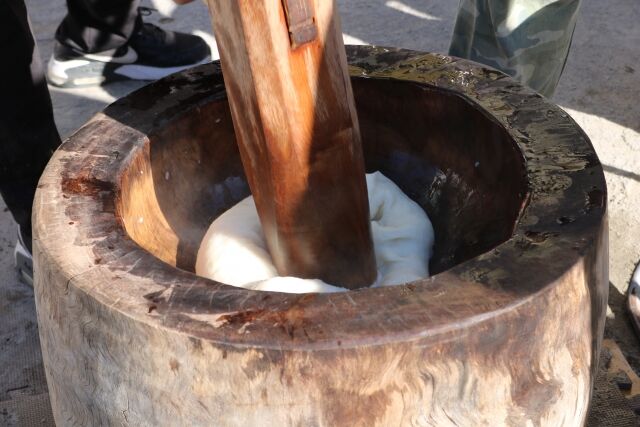 もちつき体験して…