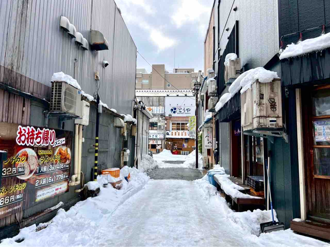 『駅前漁港』を左へ曲がったところ。