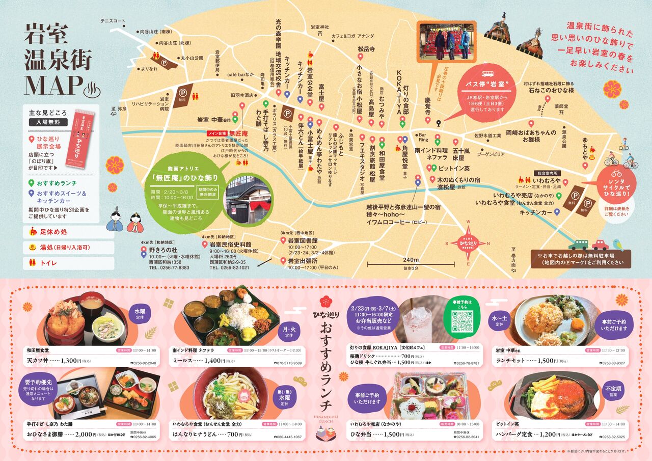岩室の温泉街やいろんなところを