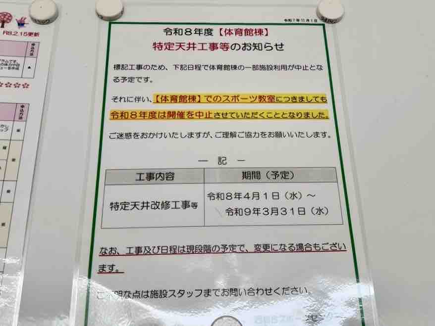 コスポの体育館が利用中止になる?!