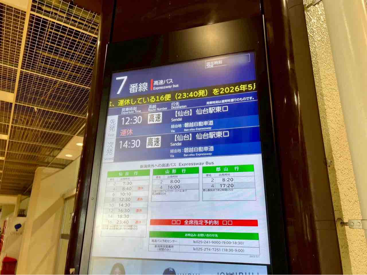 新潟発16便『万代シテイバスセンター』23:40発